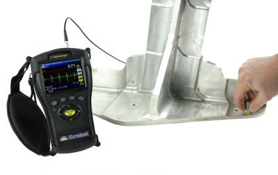 The Sonatest AlphaGage+ instrument uses single element transducers in Pulse-Echo configuration in order to measure to higher accuracy than corrosion gages and meet very strict quality control requirements as in the Aerospace and Automotive industries.